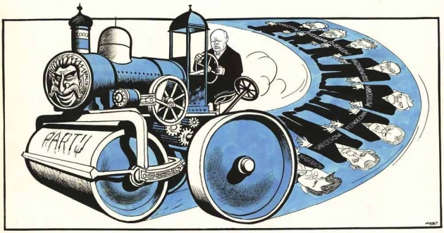 Хрущёв — не Брут: последний верил в какие-то республиканские идеалы, не опускался до грязного охаивания убитого. Говорили, что он приходится незаконным сыном Юлию Цезарю. В любом случае римский республиканец был близким соратником своей жертвы и получил от неё немало политических преференций. Хрущёв, наряду с Маленковым, Первухиным или Сабуровым, был «выдвиженцем» Сталина. Никита Сергеевич давал достаточно поводов, чтобы быть отстранённым от дел, если не арестованным или расстрелянным: и обвинения в троцкизме, и провалы на Украине во время войны… Но «Вождь» всё-таки опирался на него — хотя и наряду с другими, новыми поколениями партийных деятелей, вроде Суслова и Брежнева.