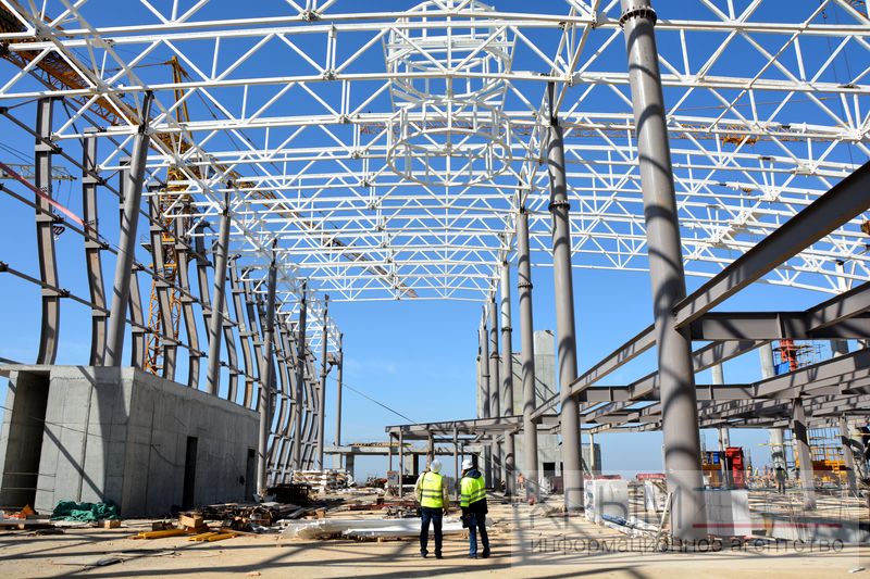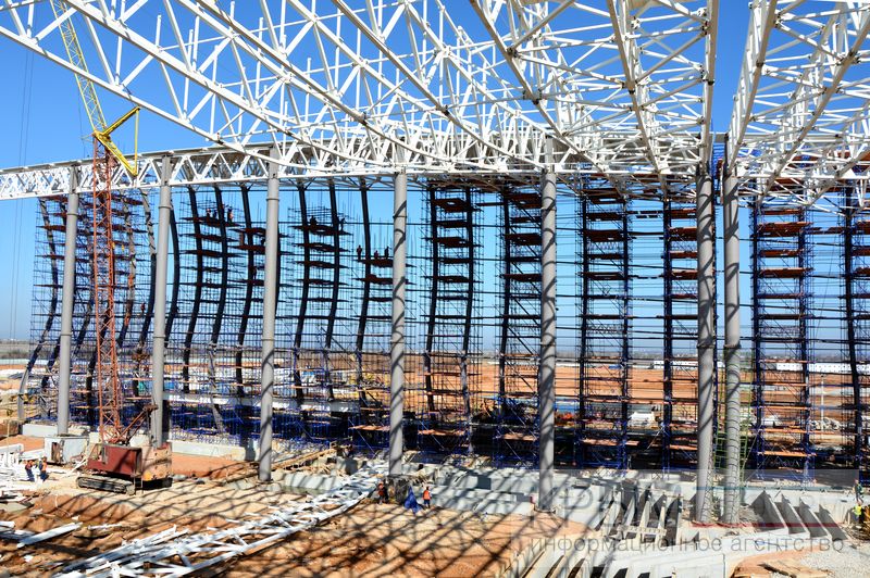 Всего строители пока смонтировали 1,9 тыс тонн металлоконструкций из 5,7 тыс тонн, запланированных проектом.