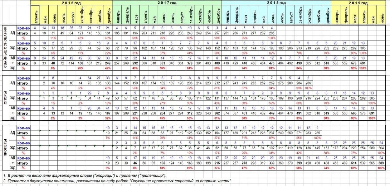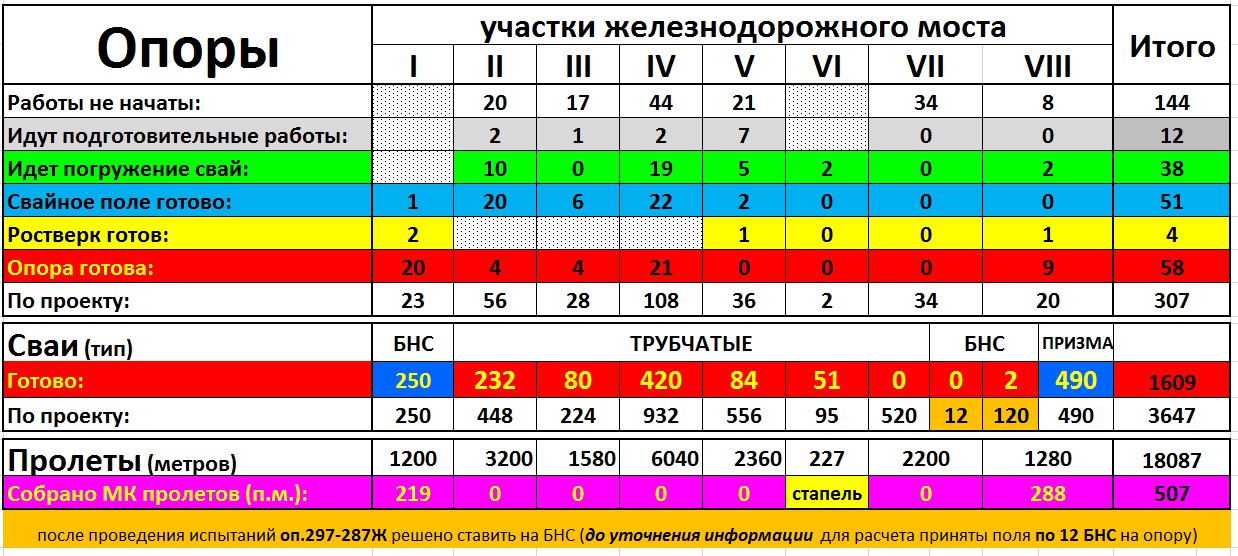 По пролетам, пролеты длиной от 54 до 57 метров. Считаем в среднем 55 метров