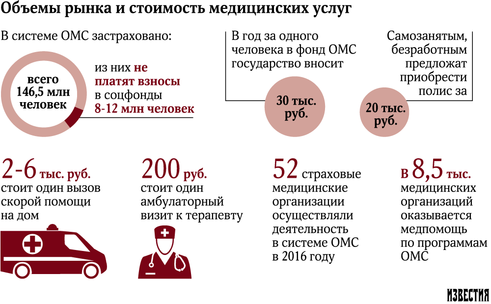 Сейчас в ОМС застрахованы 146,5 млн человек. Из них, по различным экспертным оценкам, не платят взносы в социальные фонды порядка 8–12 млн граждан, сказали в Минздраве.