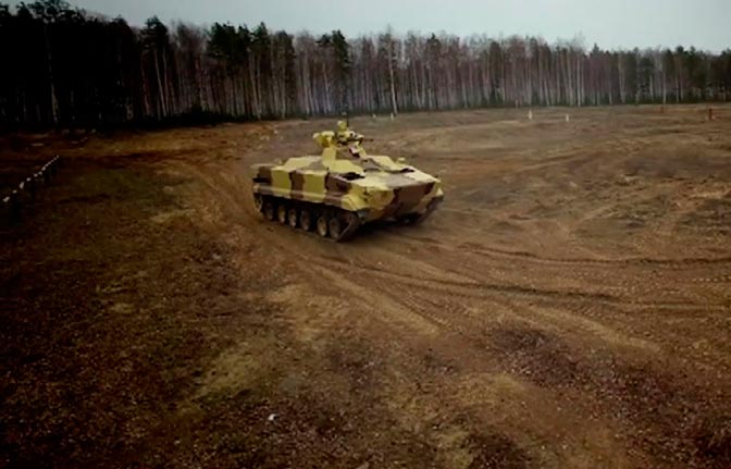 Если отойти от описания вооружения, то нельзя не упомянуть об уникальном составном элементе комплекса «Вихрь» – роботизированной платформе. Она крепится к корме боевой машины, и по команде с пульта оператора опускается и выполняет различные задания. Эта платформа, к примеру, может вынести раненого солдата с поля боя. А если надо, то и стать передвижной миной.