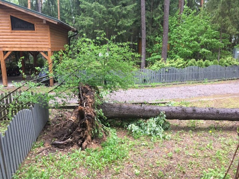 По данным агентства, порывами ветра были повалены несколько сосен. Они упали на дорогу, перегородив выезд нескольким «представительским» автомобилям, которые находятся на парковке.