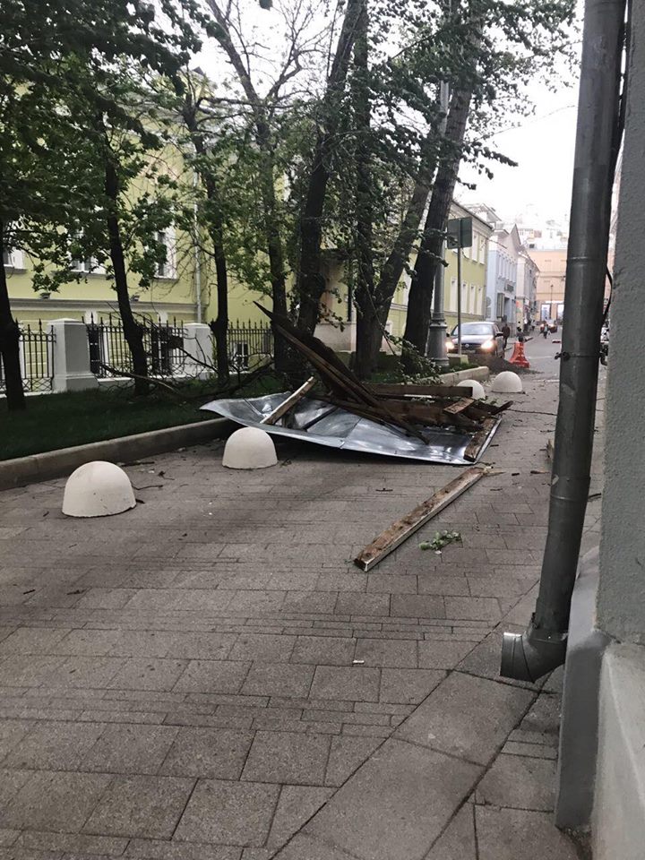 По данным Собянина, ураган повалил несколько сотен деревьев в российской столице. Ветер срывал крыши с домов, валил заборы и остановочные павильоны.