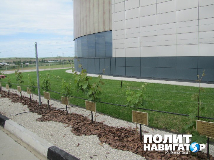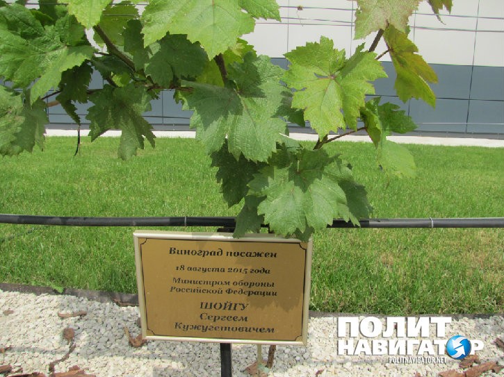 Высокие гости высадили у входа на завод мемориальные лозы. Примечательно, что самым высоким вырос виноград, посаженный министром обороны Сергеем Шойгу.