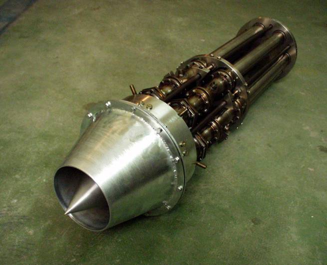 Такой ротационный двигатель состоял из кольцевой камеры сгорания с форсунками, размещёнными по её радиусу для подачи топлива. Волна детонации бегает как белка в колесе по окружности, топливная смесь сжимается и выгорает, выталкивая продукты сгорания через сопло. В спиновом двигателе получаем частоту вращения волны в несколько тысяч в секунду, работа его подобна рабочему процессу в ЖРД, только более эффективно, благодаря детонации смеси топлива.