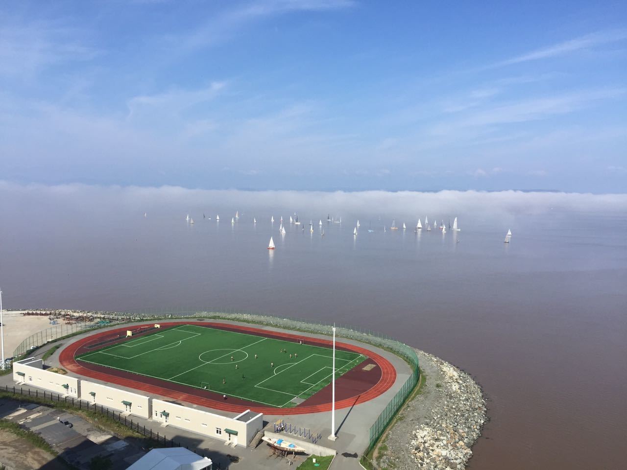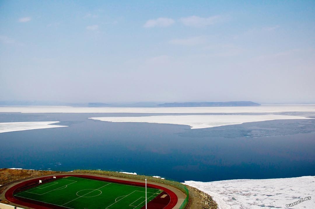 «Самым красивым футбольным полем» назвали в сети стадион МГУ имени Невельского во Владивостоке. Он расположен на насыпной площадке на мысе Купера и с трёх сторон окружён морем.