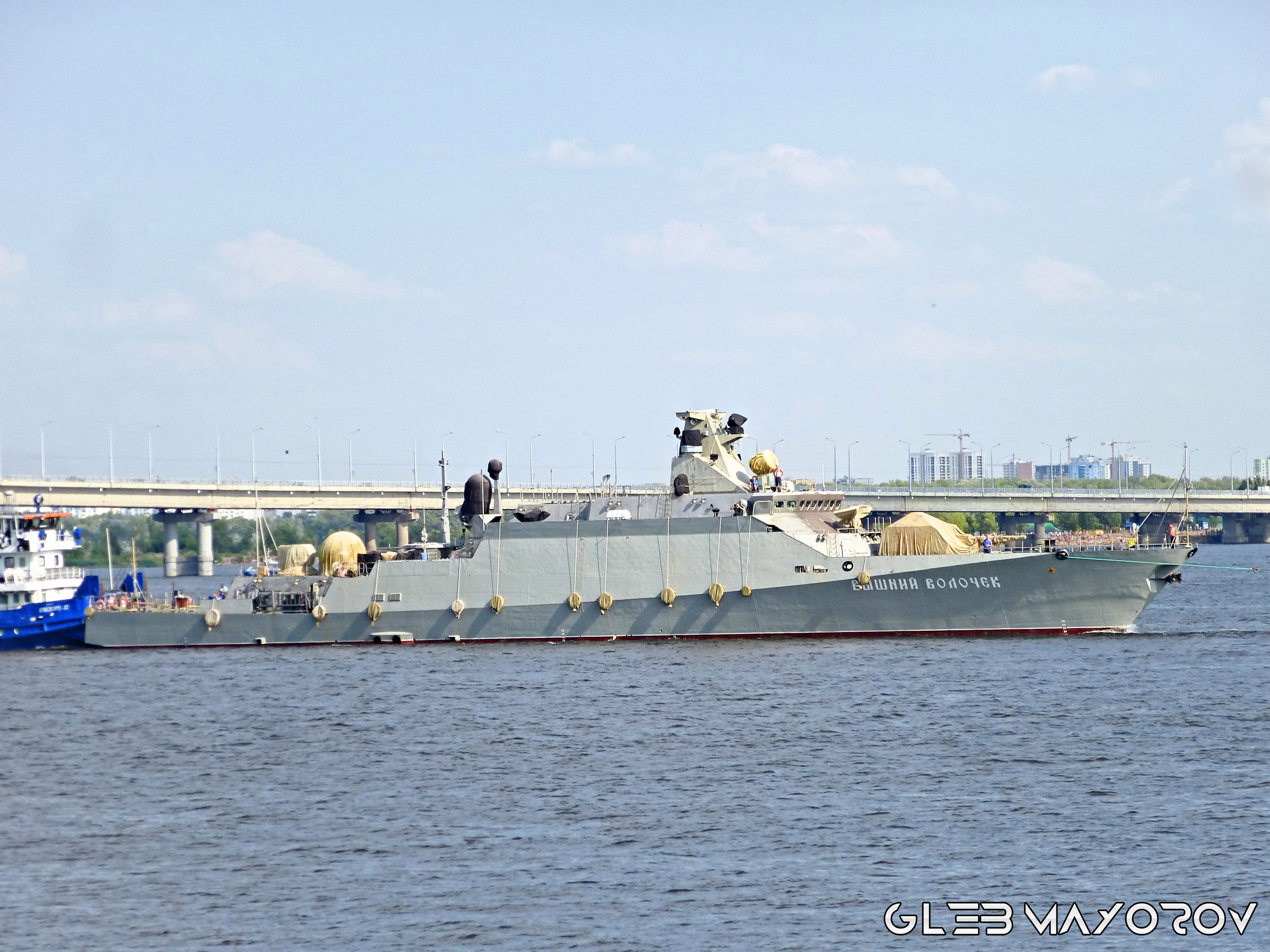 Буксируемый из Зеленодольска в Новороссийск по Волге законченный постройкой на АО «Зеленодольский завод имени А.М. Горького» шестой по счету малый ракетный корабль проекта 21631 "Вышний Волочек“ (заводской номер 636). Саратов, 22.07.2017 (с) Gleb Mayorov / vk.com/typical_riverman Источник