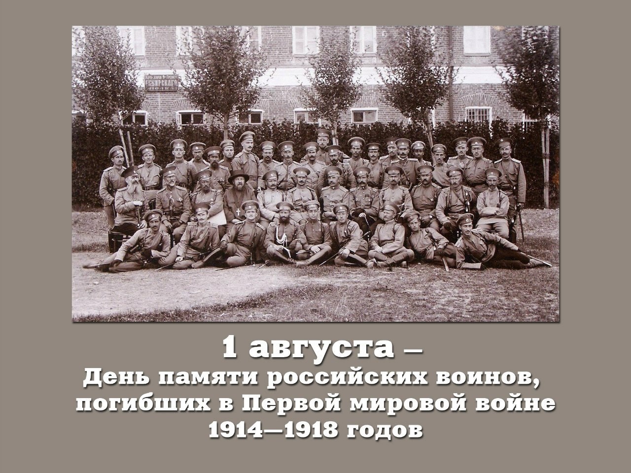 1 августа: День памяти российских воинов, погибших в Первой мировой войне