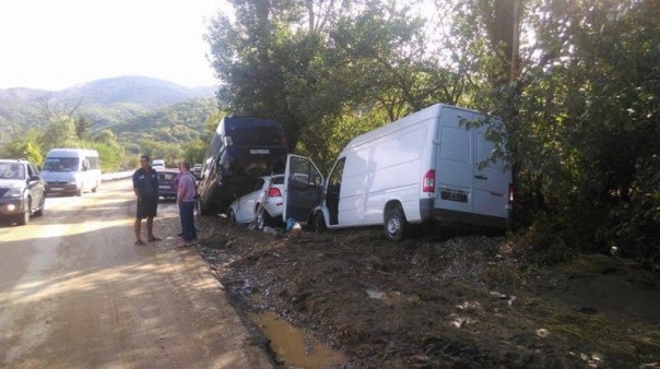 В районе села Дачное (на участке трассы от села Грушевка до Судака) из-за селя оказались в заторе несколько десятков машин. Многие автомобили были опрокинуты в кювет. Для регулирования дорожной ситуации на место были направлены спасатели МЧС и сотрудники ГИБДД.