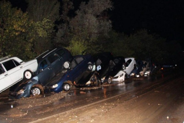 Возле крымского города Судак сошел мощный селевой поток, снесший с трассы десятки машин. Погибших и пострадавших нет. Вечером 18 августа в районе Судака, Коктебеля и Феодосии резко ухудшилась погода, прогремели грозы, прошли сильные ливни.