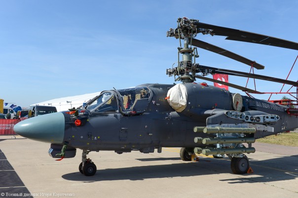 Всепогодный разведывательно-ударный вертолет Ка-52К предназначен для патрулирования, огневой поддержки десанта при высадке на берег, решения задач противодесантной обороны на переднем крае и в тактической глубине в любое время суток. Источник