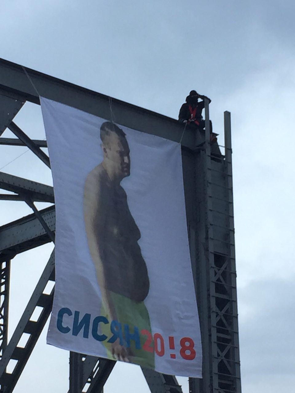 Новосибирск, который стал вторым пунктом посещения в поиске электората на карте Навального, «отработал» за миролюбивый Омск и, по идее, отбил у Лёши всякое желание ехать дальше. Ведь в третьем городе с таким развитием событий действительно могут уже и побить. Его здесь действительно встретили «по-царски», вывесив фактически на самой сцене баннер с полуголым Навальным, обрюзгшим до неприличия, и надписью «Сисян 2018».