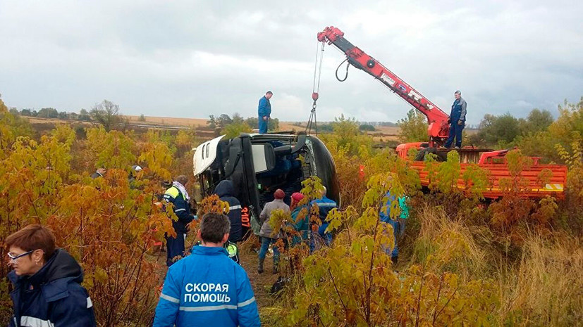 В Коломенском районе Подмосковья перевернулся пассажирский автобус, погибли шесть человек, 24 пострадали.