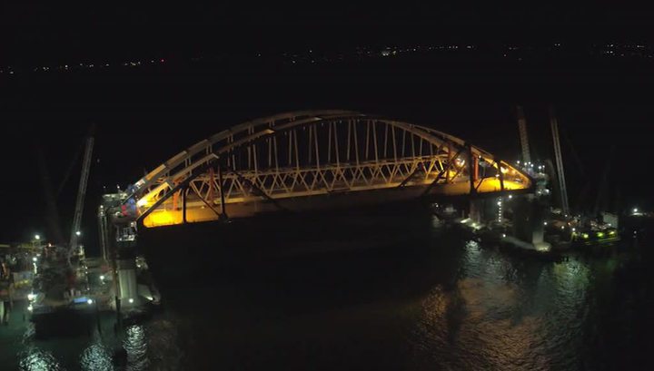 Автомобильную арку моста в Крым подняли на высоту 35 метров