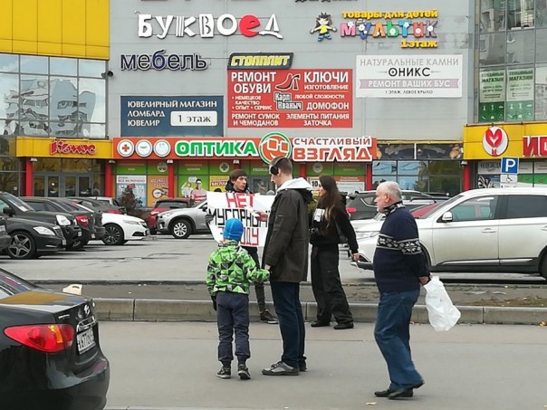 Не пройдя и ста метров от этого места, по пути на автобусную остановку, прямо напротив т.к. "Ульянка", я наткнулся на пикет собиравших подписи активистов.