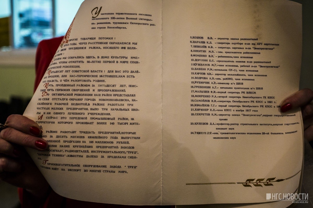 Сегодня в новосибирском ДК Попова вскрыли капсулу времени, заложенную в 1967 году, — в ней лежало трогательное письмо потомкам на трёх страницах.