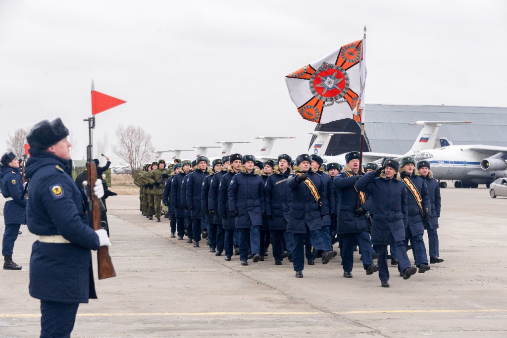 На церемонии по случаю завершения формирования восстановленного 235-го военно-транспортного авиационного полка 18-й военно-транспортной авиационной дивизии Военно-транспортной авиации ВКС России. Ульяновск-Восточный, 01.12.2017 (с) АО "Авиастар-СП"