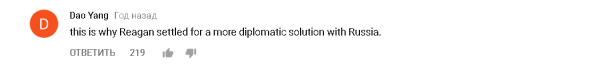 "Именно поэтому Рейган решил найти более дипломатическое решение с Россией,"-озвучил некто неизвестный факт трусости Рейгана.