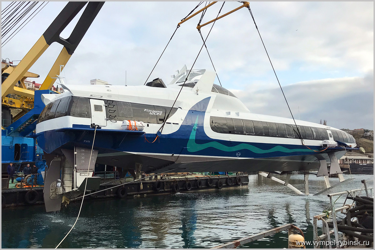 Выгрузка в Севастополе для дооснащения на ООО «Судоремонтный завод «Персей» головного пассажирского судна на подводных крыльях «Комета 120М» проекта 23160 (заводской номер 02701), построенного на АО «Судостроительный завод «Вымпел» в Рыбинске, 16.11.2017 (с) АО «Судостроительный завод «Вымпел»