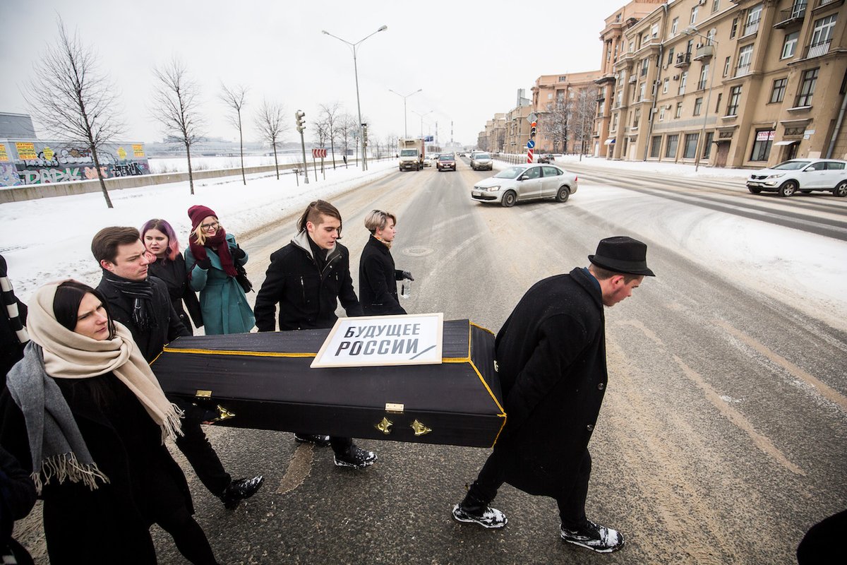 Сегодня в культурной столице члены навальнистского ЛГБТ-движения "Весна", как радостно сообщает дождливый телеканал, "символически похоронили будущее России". Мероприятие состоялось на Малоохтинской набережной.