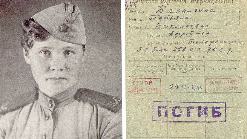 23 июня 1944 года выпускница Центральной женской школы снайперской подготовки Татьяна Барамзина убила в бою 20 солдат противника. Оказывая в этот же день помощь раненым, 25-летний ефрейтор попала в плен. Нацисты подвергли девушку чудовищным пыткам.