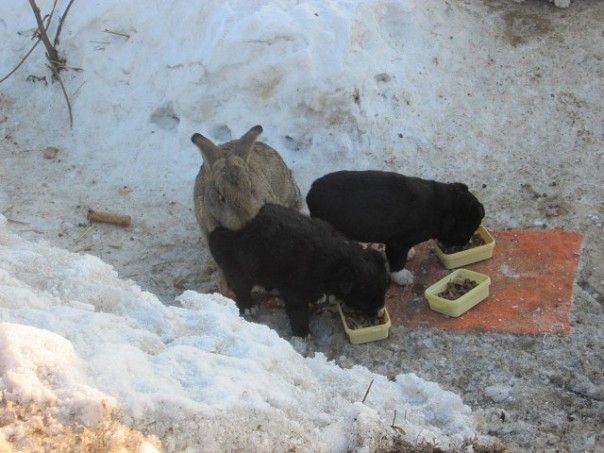 В Омской области кролик спас щенков и заменил им убитую собаку