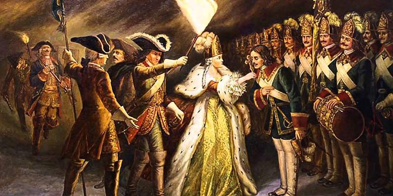 Тёмной осенней ночью 25 ноября 1741 года дочь Петра Великого, Елизавета, ворвалась в сопровождении трёхсот гвардейцев в Зимний дворец, арестовала семью малолетнего императора Иоанна VI и объявила, что берёт власть в свои руки. Утром уже был готов манифест о вступлении на престол новой императрицы, которой присягнули войска и чиновничество.