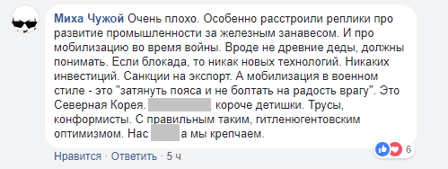 «Железный занавес для нас — можно сказать, долгожданный подарок, способ сосредоточиться, найти независимость, поднять промышленность», — считает восьмиклассница.