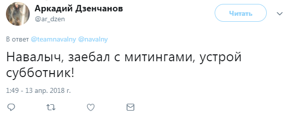 Для российского общества он давно превратился в политический труп. Яркое тому подтверждение — вялая реакция зрелой общественности на инициативу Навального устроить беспорядки 5 мая. По сути, оппозиционеру остается надеяться лишь на неокрепших психикой молодых людей, готовых бузотёрить по любому поводу.