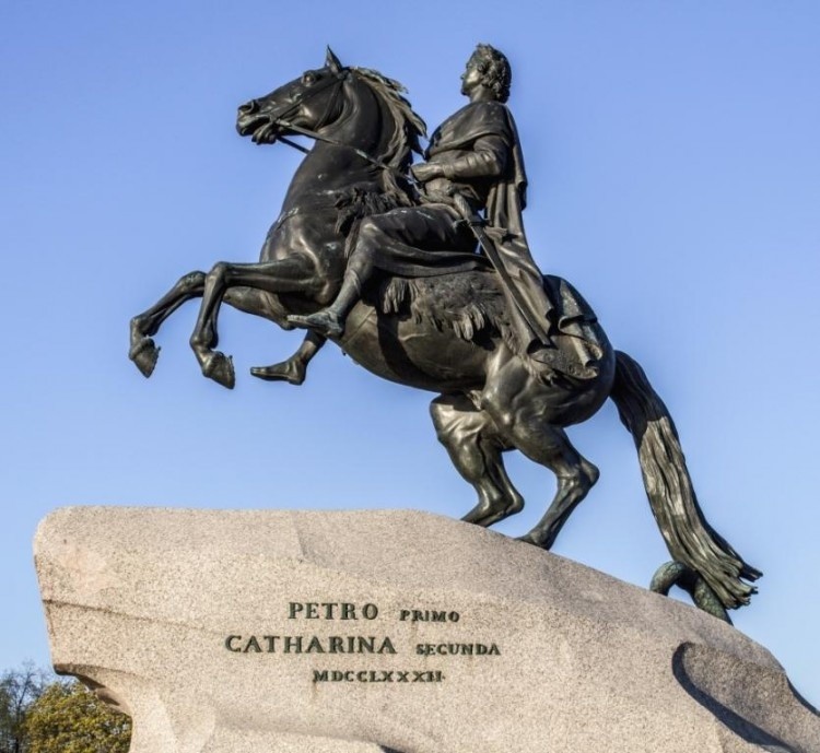 «Медный всадник» на Сенатской площади в Санкт-Петербурге. Надпись на постаменте: Petro Primo Catharina Secunda — Петру Первому Екатерина Вторая. Российские правительницы XVIII века прекрасно понимали, кому они обязаны своим величием. Однако удержать высокую планку петровской политики они не могли