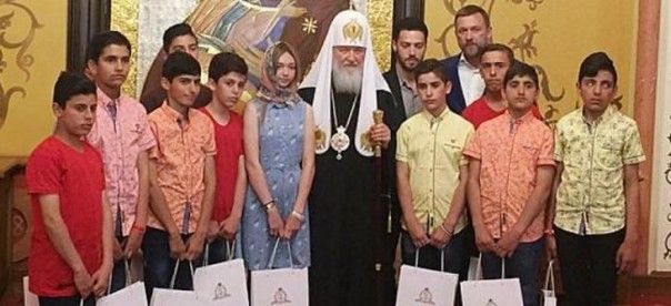 Патриарх Московский и всея Руси Кирилл встретился в субботу в храме Христа Спасителя с сиротами из Сирии - учащимися школы-интерната для детей погибших сирийских военных. Они находятся в России по приглашению организации ветеранов "Боевое братство".