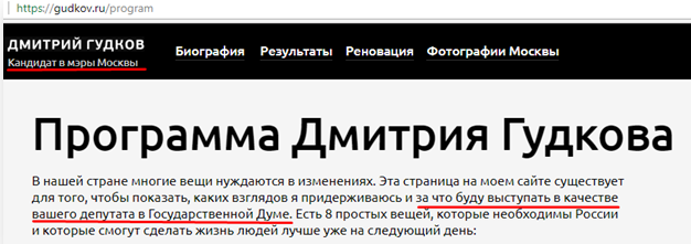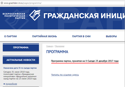 На его сайте есть программа в Госдуму, оставшаяся с тех пор, когда он баллотировался туда от «Яблока». На сайте партии «Гражданская инициатива», переименованной в «Партию перемен», председателем которой стал Гудков, ее тоже не обнаружилось.