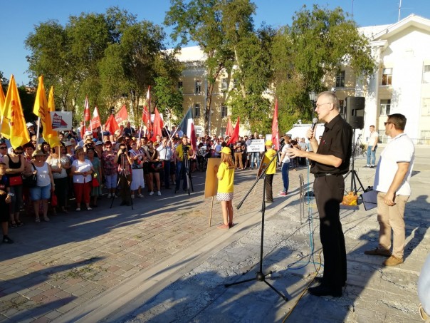Судя по тому, что в сквере Кирова вчера практически не осталось свободных мест, можно констатировать, что пенсионная реформа тревожит астраханцев куда больше чем «Большая вода», и даже чем недавнее урезание льгот ветеранам. Участие в акции протеста приняли сторонники политических и общественных движений самой различной направленности, да и просто масса неравнодушных горожан. Единым фронтом (что бывает нечасто) против инициативы федерального правительства выступили представители всех представленных в региональном парламенте оппозиционных партий — «Справедливой России», ЛДПР и КПРФ.