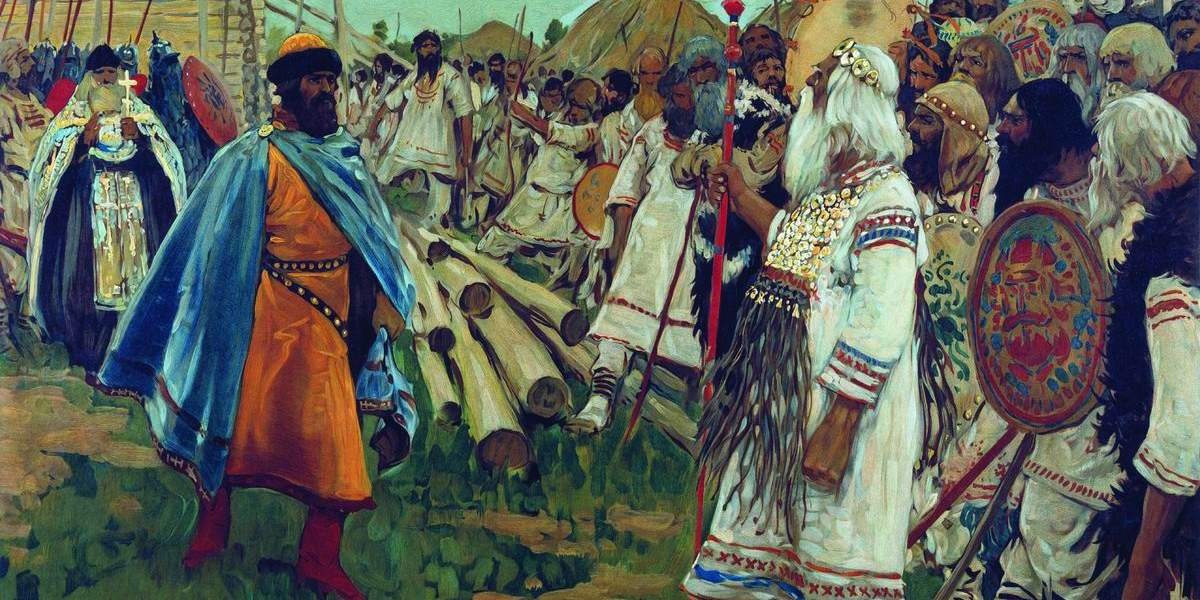 К моменту рождения Всеслава Русь была уже полвека как крещена. Ну как «крещена»… В крупных городах построили христианские храмы, языческие капища большей частью разрушили. Упорных и активно сопротивлявшихся язычников постарались перебить.