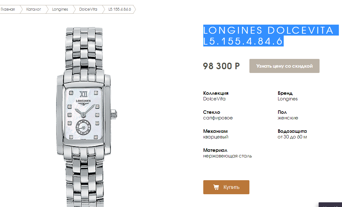 На этом изображении Юлия демонстрирует LONGINES DOLCEVITA L5.155.4.84.6. В магазинах вы найдете такие часы дешевле ста тысяч рублей.