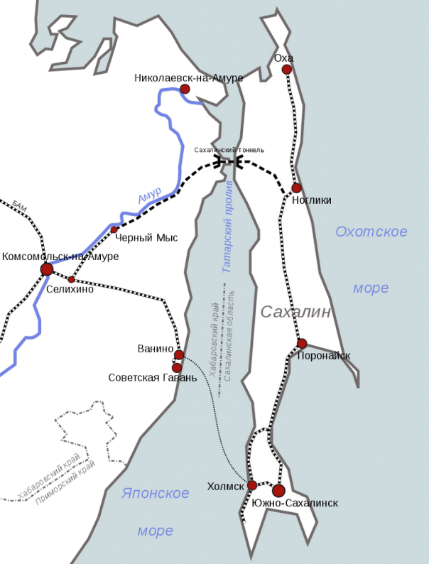 Кроме того, как также отметил эксперт, проработаны три варианта транспортных связей перевозки грузов из центральной Европы и России в Японию. Так, экспортный вариант предусматривает более 25 миллионов тонн в год, транзит внутри страны и импорт — 4,7 миллионов тонн, а также транспортировка внутрироссийских грузов по территории страны в сообщении между материком и Сахалином по новой железнодорожной линии Селихино через пролив Невельского — 9 миллионов тонн.