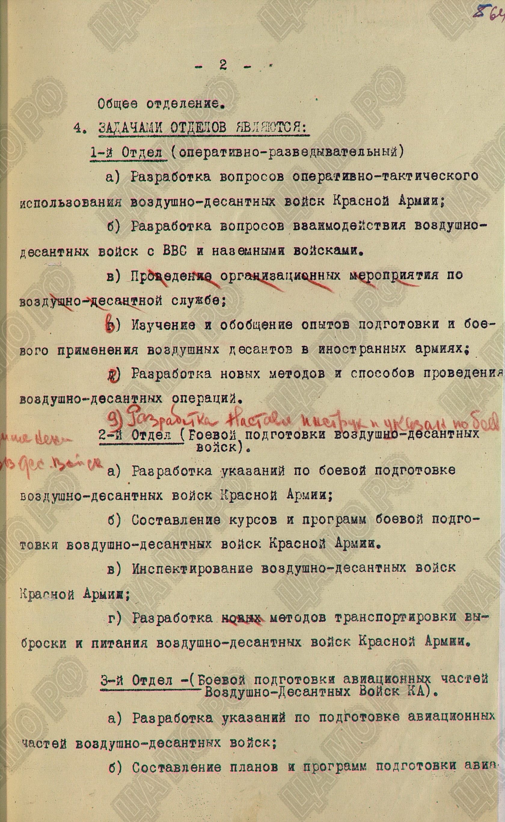 Проект Положения о Главном управлении Воздушно-десантных войск Красной армии