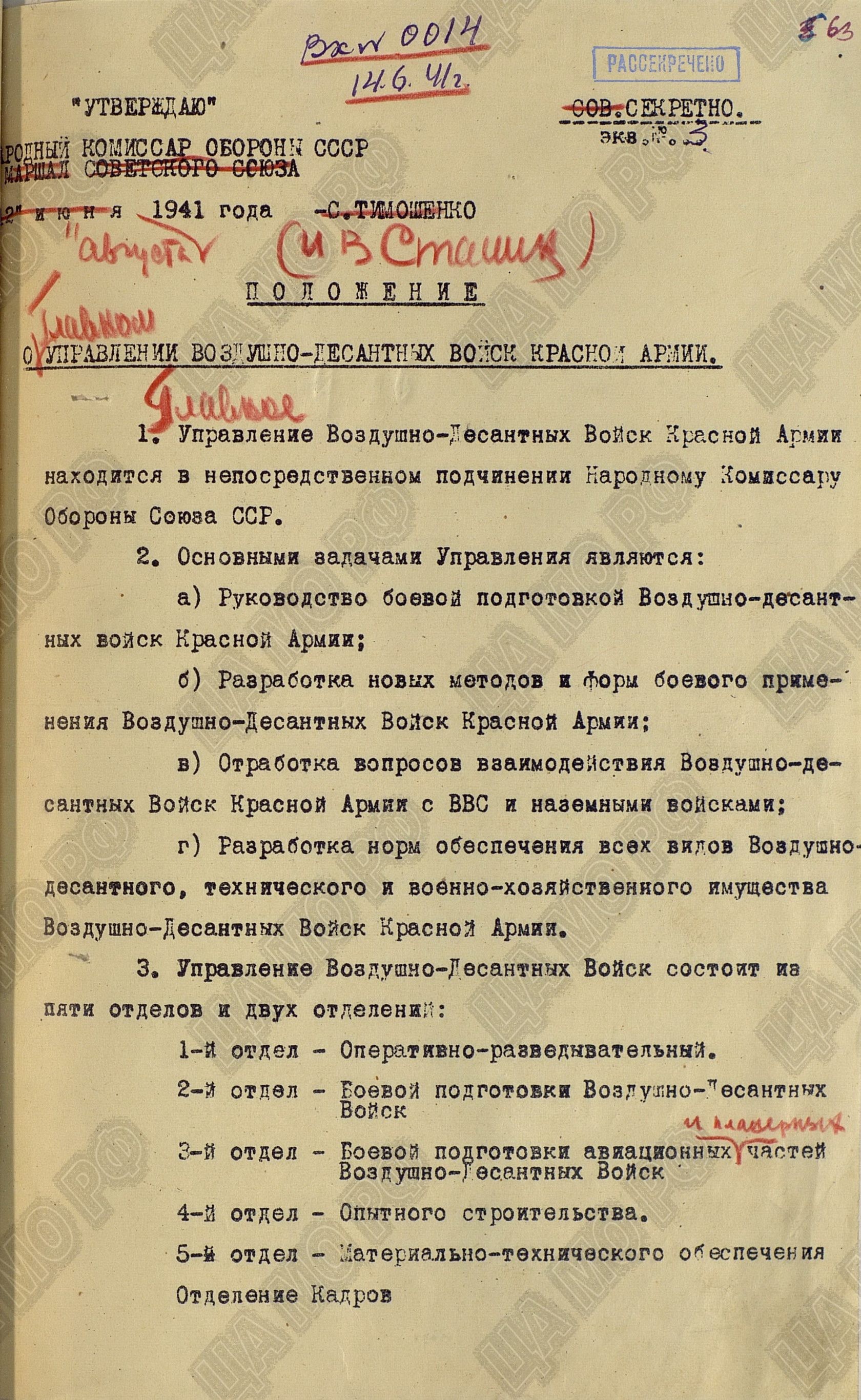 Минобороны опубликовало секретные документы о создании и становлении ВДВ