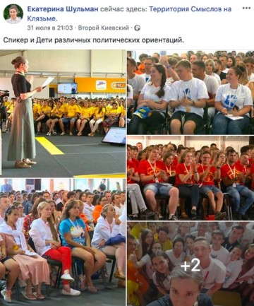 Во-вторых, на форуме «Территория смыслов на Клязьме», ежегодно проводимом Федеральным агентством по делам молодежи, для нашего неокрепшего юношества была проведена встреча с Екатериной Шульман под названием «Диалог на равных».