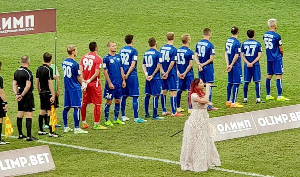 В матче 7-го тура ФНЛ украинец стоял лицом к трибунам во время гимна России, когда все остальные участники матча устремили свои взоры на российский триколор.