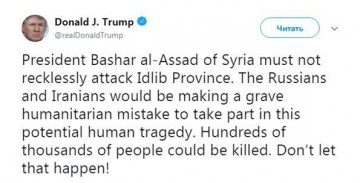 Трамп пригрозил России и посоветовал не освобождать Идлиб