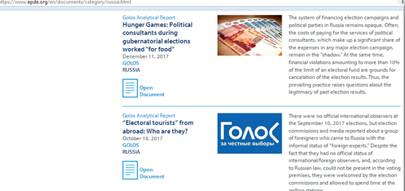 Еще одним спонсором «Голоса», по словам бывшей руководительницы этой конторы, является «Европейская платформа за демократические выборы» (ЕПДВ), которую, в свою очередь, поддерживает «Открытка» Ходорковского.