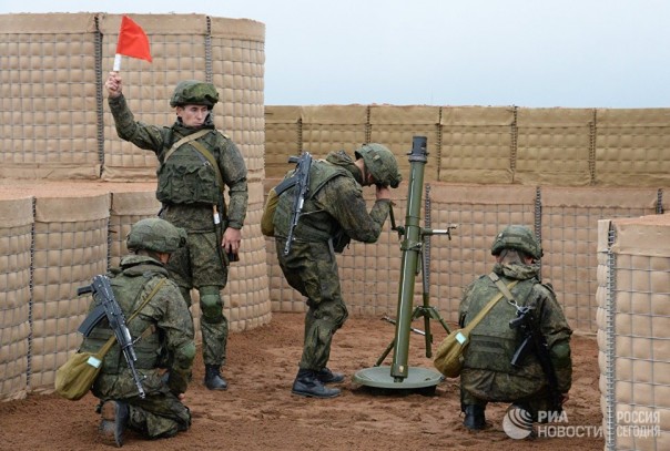 Минометный расчет Вооруженных сил России во время учений Вооруженных сил России и Белоруссии