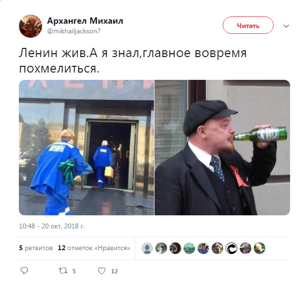 "Ленин жив. А я знал, главное — вовремя похмелиться", — пошутил @mikhailjackson7.