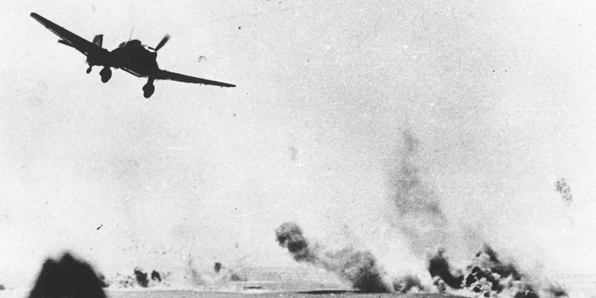 В 16:00 в небе показались бомбардировщики люфтваффе. Вражеские лётчики безнаказанно сеяли смерть на головы защитникам — советские истребители появились слишком поздно. Когда они прилетели, «юнкерсы» уже успели трижды отбомбиться по позициям.