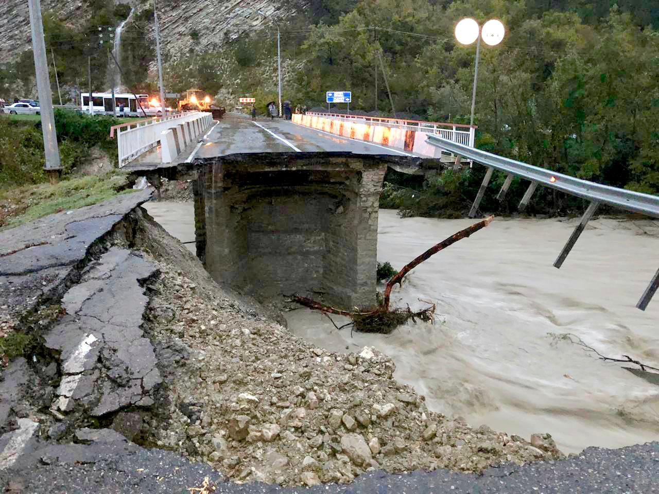 Наводнение на Кубани: погибли 2 человека, один пропал без вести, в Сочи из-за паводка рухнул 20-метровый участок моста