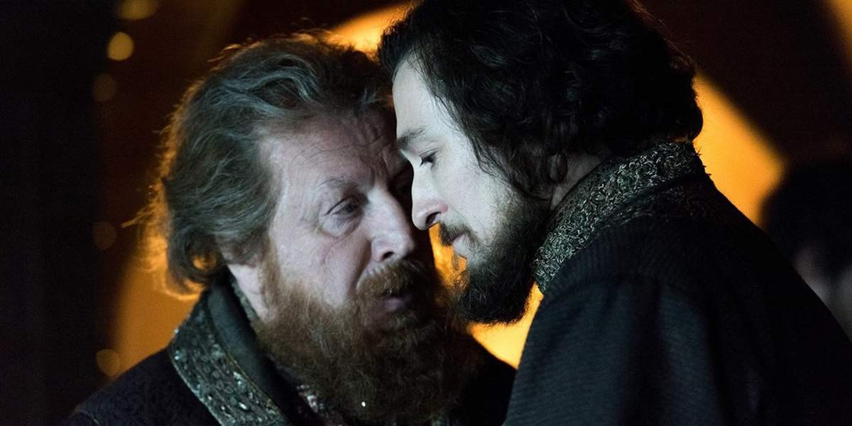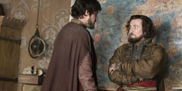 Или вот показывают, как Годунову только что дали высокий придворный чин кравчего. Богдан Бельский — знатный тролль 80-го уровня — рассказывает Борису, как хорошо висят на дыбе те, кто ещё совсем недавно был в числе ближайших приближённых царя. Время этой беседы — 1581 год, что ясно по вскоре случившемуся убийству царевича Ивана Молодого.