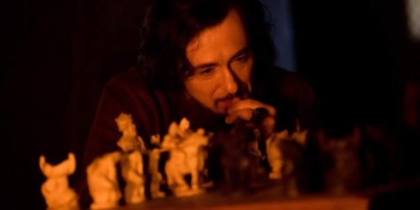 Вернёмся к самому началу фильма. Молодой Годунов вступает в опричнину. Делает он это в какой-то избушке, где Малюта Скуратов с аппетитом ест суп. Малюта у нас «государев человек», показанный с большой симпатией. Делает свою работу с душой — видно, что жестокостей не любит. И вообще в опричном терроре виноват царь. А исполнители — они же душевные люди. Сражаются на саблях, отличаются чувством юмора — прямо мушкетёры короля.