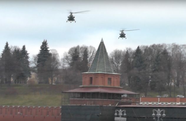 22 ноября в соцсетях появились фото и видео, на которых были запечатлены два военных вертолёта, поднявшихся с территории Кремля. Догадки скептиков о том, что при их участии военные снимают остросюжетный боевик, не подтвердились. В реальности всё оказалось куда проще — Федеральная служба охраны проводила учения с участием личного состава.