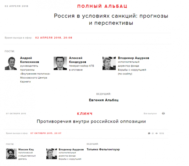 Его «Эхо Москвы» тоже уважает, приглашает выступить в качестве гостя программы:
